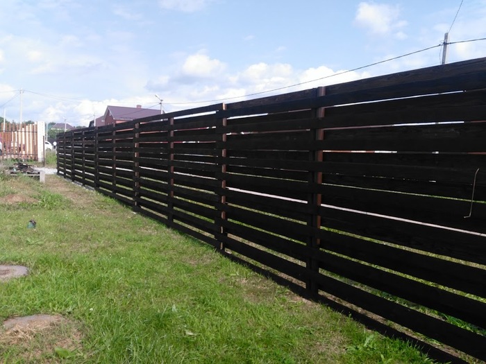 На этом я пожалуй закончу, забор установлен, стоит и радует глаз, дерево пока ничем не пропитывалось и не покрывалось, посмотрим как оно будет чувствовать себя после зимы, возможно нужно будет его чем-то покрыть, а может и так всё будет отлично.