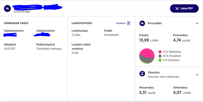 2. Прошлый договор кончился в марте, и электричество стало стоить 0,1399 евро за кВт·ч. Еще добавили абонентскую плату 4,74 евро в месяц.