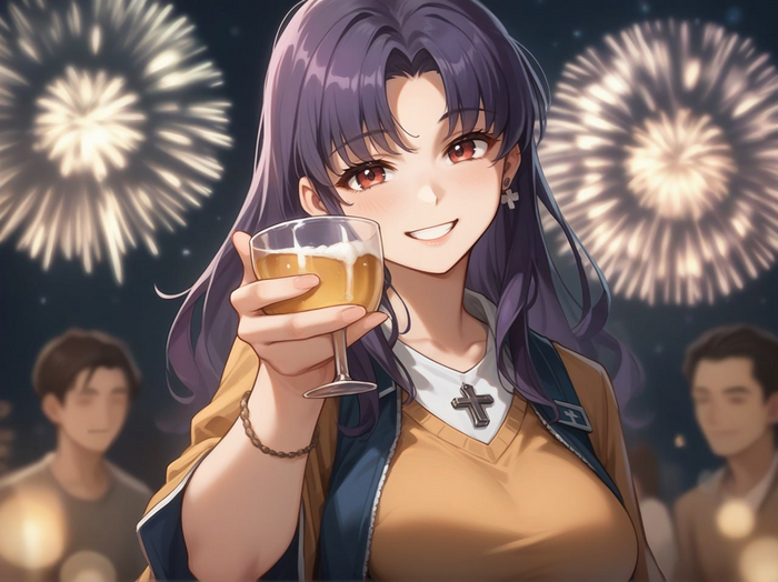 Этот арт собрал больше всех реакций, и не удивительно, потому что гном, Мисато и пивко xD