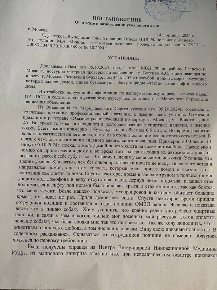 Для ЛЛ: синебота-учителя пожурили всем интернетом, ни административного ни уголовного дела против него не возбуждают не смотря на то, что в своём объяснении заявляет о наличии отягощающего обстоятельства, прокуратура согласна. Из школы уволен после резонансы и всплывшей инфы о систематических косяках. Собака идёт на поправку.