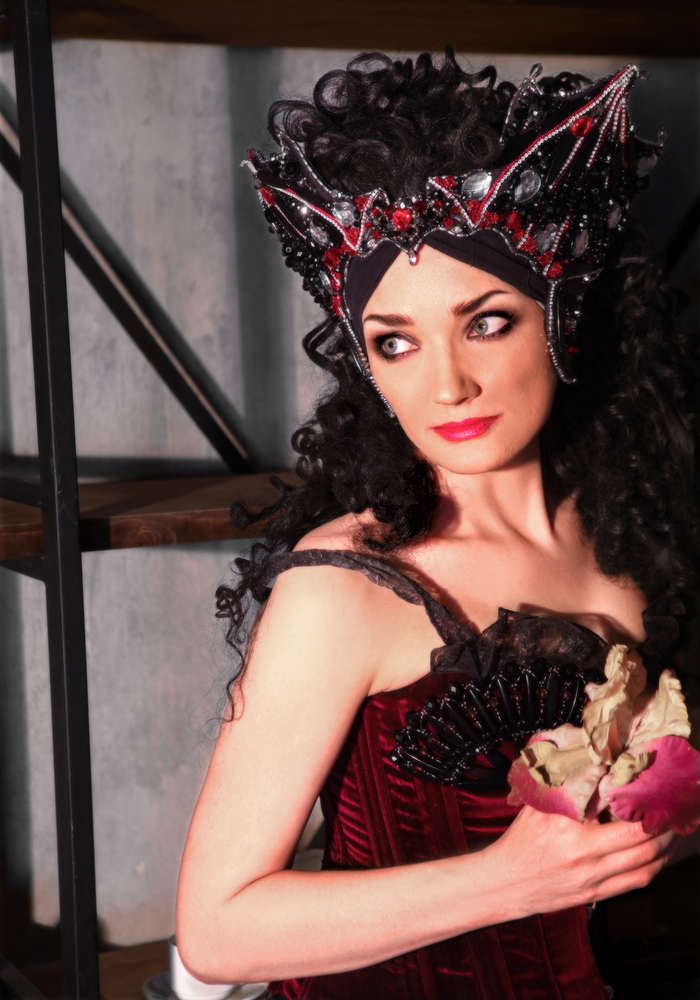 Продолжаю помаленьку делиться своим творчеством, чтобы не пропадать :-) Тут корона (или диадема, или головной убор - как кому нравится) моей работы, штука сложная, трудоемкая, по-моему - можно условно отнести к готическому стилю - не старинному-готическому, а когда косят под всяких там вампиров :-) Волосы - парик. Предвидя возможную реакцию женской части аудитории - да, штукатурки-макияжа тут килограмм. :-) Интересный парадокс - чуть ли не каждая вторая женщина сейчас ходит с наращенными ресницами по жизни, но находится множество дам, критикующих любую фотографию за то, что внешность, мол, не настоящая.