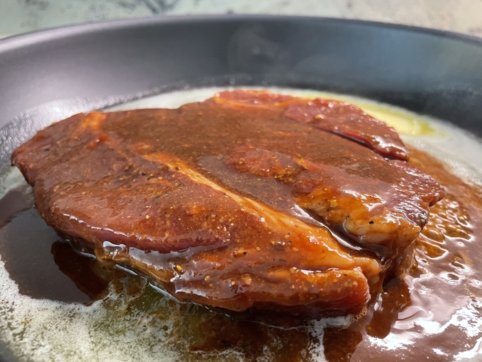 У стейка получился очень пряный, слегка пикантный оттенок с явными нотками бурбона. Я думаю, что в следущий раз возьму дымный виски. По ощущениям это как раз будет в самую точку.