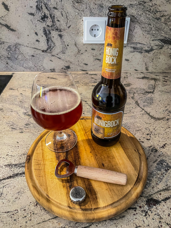 Для Бока с 7.5% алкоголя вкус очень сладкий и мягкий. Я даже удивился, потому что привык к другому эффекту. Сначала я даже не понял, есть ли там алкоголь. Потом, к середине бокала понимаешь, что тут всё таки 7.5%, забирает хорошо. Преобладают солодовые, сладкие нотки, слегка карамельные. Мед присутствует с первого глотка, что делает пиво очень приятным для питья. Горечь остается на заднем плане, но я этого ожидал от такого пива. Послевкусие сладко-горькое, держится долго и оседает где-то на корне языка. И мёд. Я полагаю, он смягчает завышенный градус.