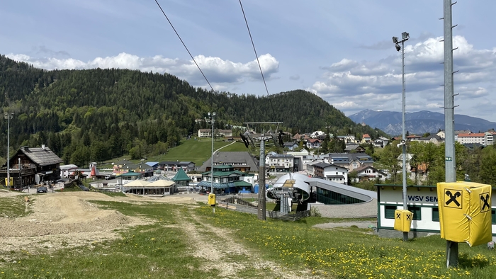 Дальше мы вышли на горнолыжную трассу, которая перемещалась с велосипедной трассой. Дело в том, что Semmering очень популярнее место для проведения всяких соревнований и трассы часто заняты. А это значит там не пройти. Сегодня нам повезло.