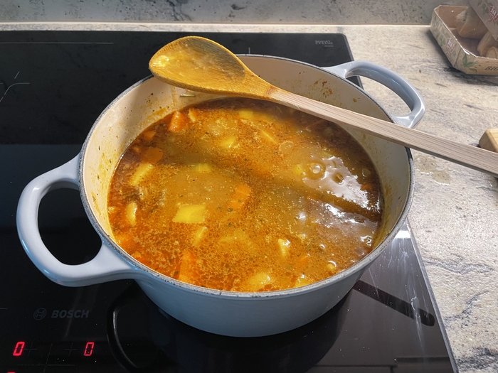 С этим блюдом связаны особые воспоминания из моей юности и времени, когда я «панковал», стучал на барабанах в одной grindcore группе, завтракал пивом и сигаретами и не особо задумывался о будущем. На очередной тусовке на Дунае мы решили сварить еду в ведре. Кто-то сказал набрать воды из реки… а наш басист, Кристоф, предложил вместо воды вылить несколько банок «стерильного пива». Тогда я офигел от вкуса этого варева и при любой возможности готовил то блюдо. Сейчас, спустя 17 лет, оно стало «богаче», но не менее вкусным.