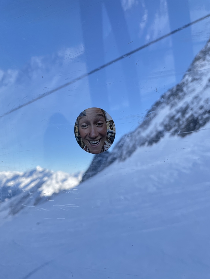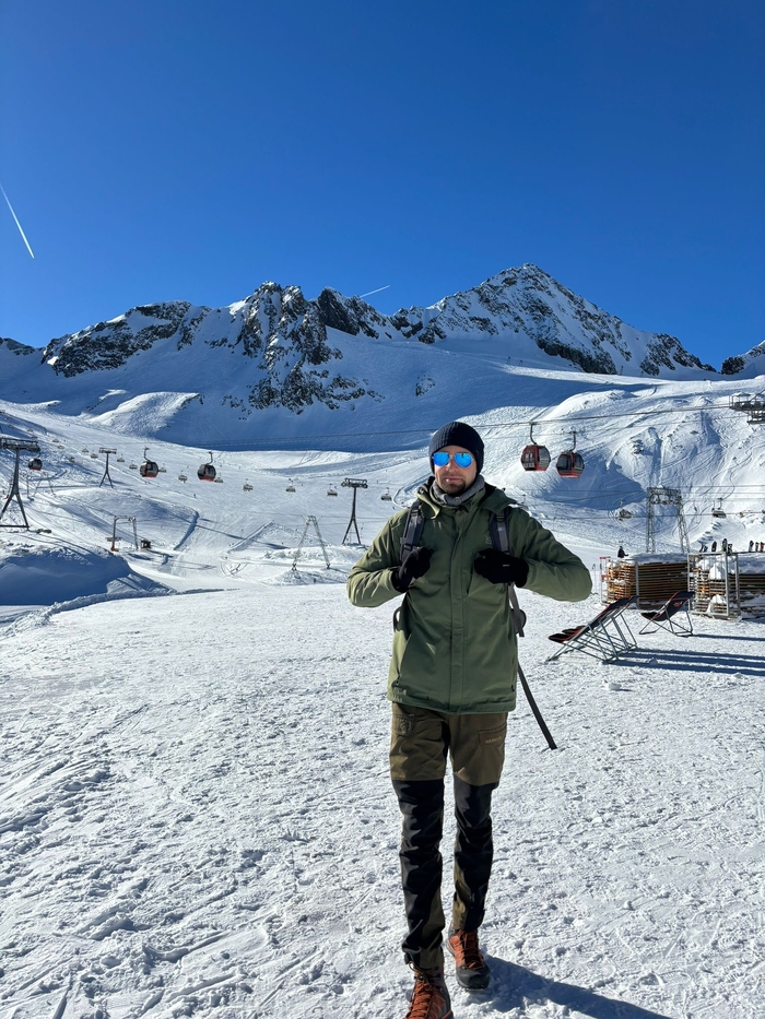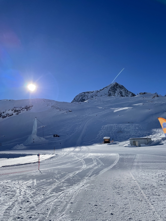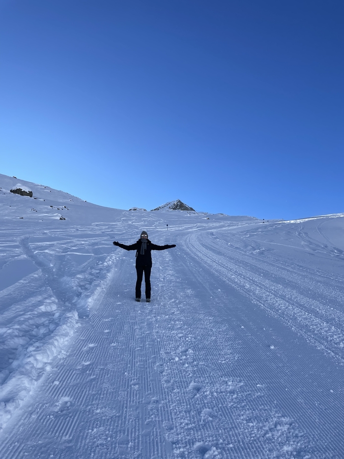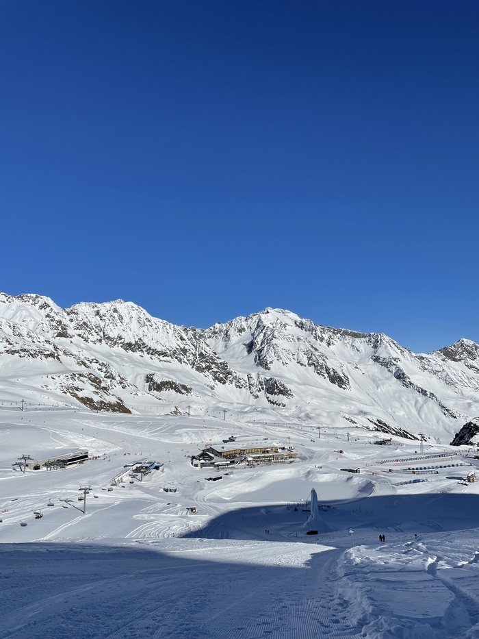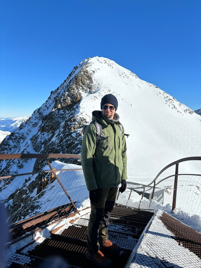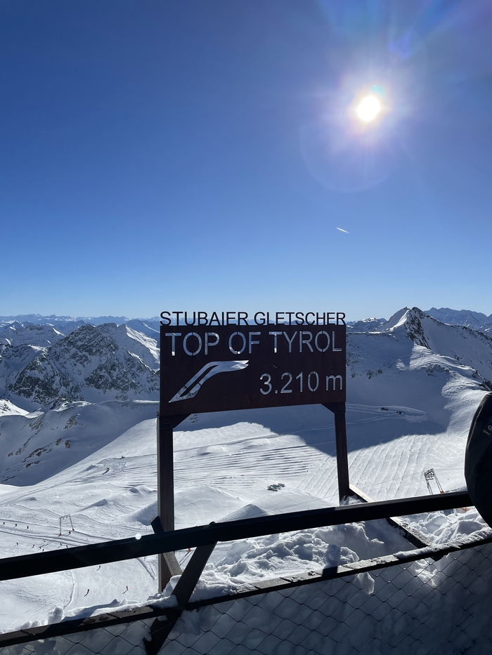 К сожалению, тропа на самый верх, на 3210 метров, была закрыта из-за большого наплыва лыжников. Чтобы не подвергать редких пешеходов ненужной опасности, тропу закрыли. Официальных заявлений, конечно же, не было. Расстраиваться мы не стали, а прыгнули в кабинку и поехали на самый верх, на смотровую площадку.