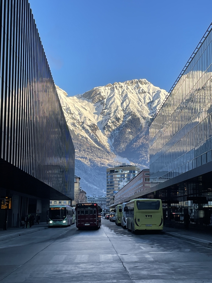 В 7 утра зазвенел будильник, в 7:30 мы уже сидели на завтраке, а в 8:05 уже в автобусе 590, что шёл до нашей остановки Hotel Mutterberg