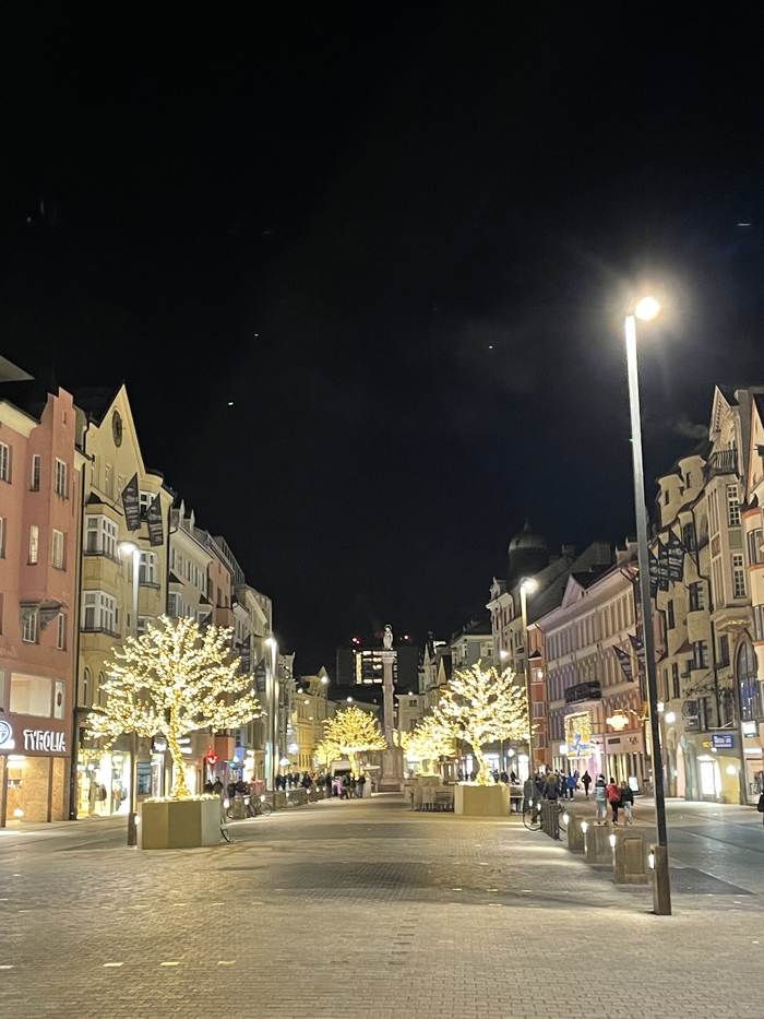 Теперь в отель, отдыхать. На 19 часов ужин в ресторане Wilderin и прогулка уже по ночному Иннсбруку. Холодно! Намного холоднее чем в Вене.