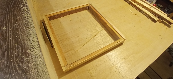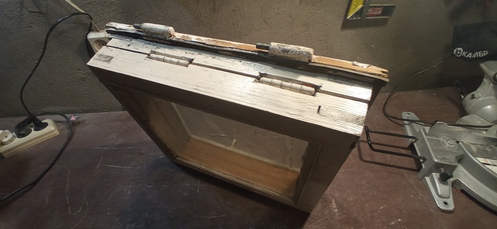 В качестве рамки использую всю ту же форточку, а чтобы она не была такой громоздкой, отпиливаю лишнее на циркулярке.