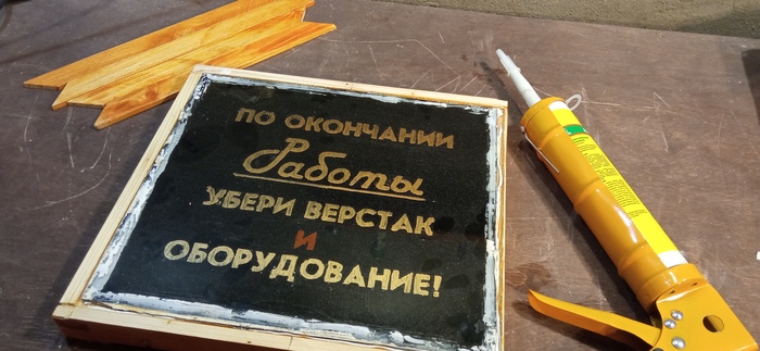 Засаживаем стекло в раму на акриловый герметик и закрываем края деревянными рейками, затонированные максимально неподходящим рыжим маслом. Как вы уже поняли, все ради придания налета времени.