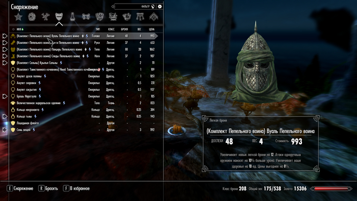 Для примера - я пользуюсь набором пепельного воина и уникальным кинжалом, который, к слову сказать, было не просто найти. Но не волнуйтесь, у Enderal есть своя вики, которая поможет вам в поисках предметов и в выполнении заданий (правда она исключительно на английском языке, но автоперевод веб страницы решит эту проблему).