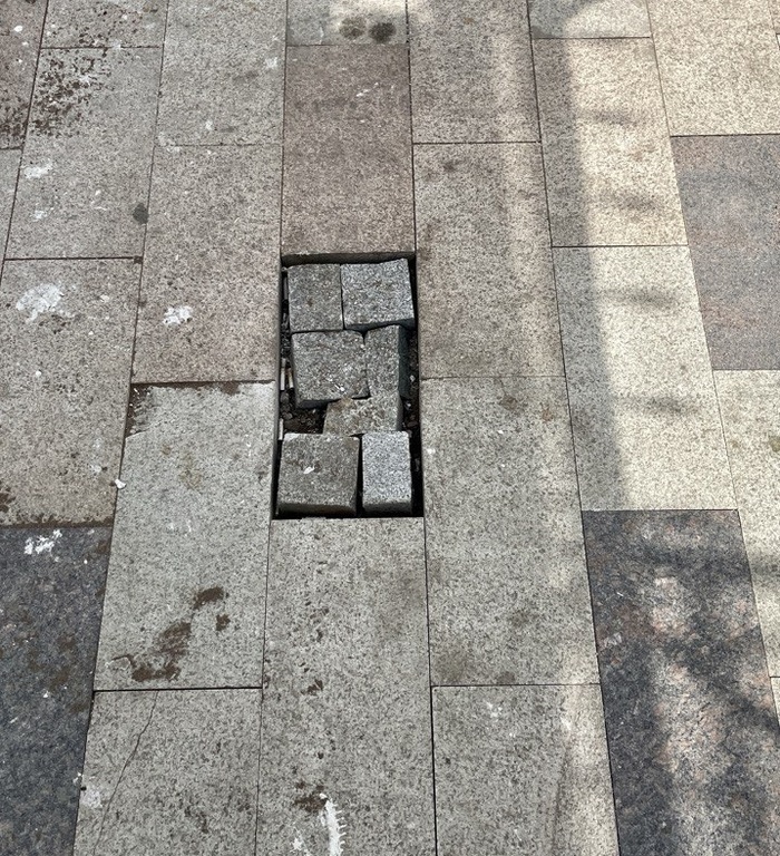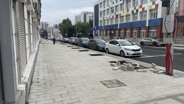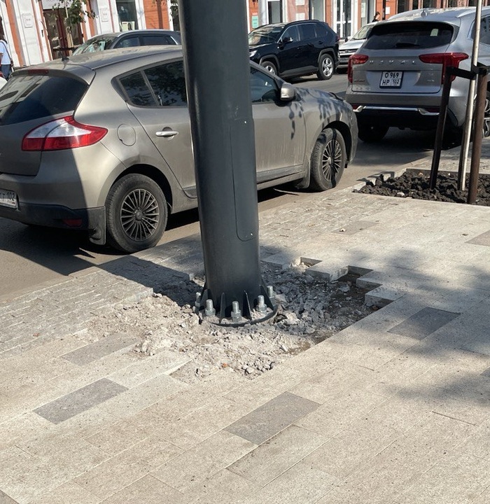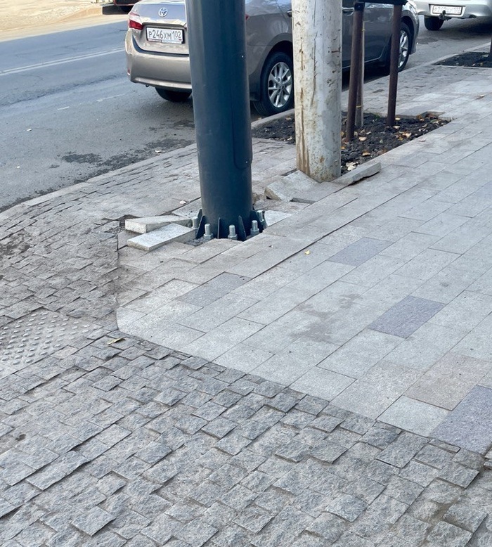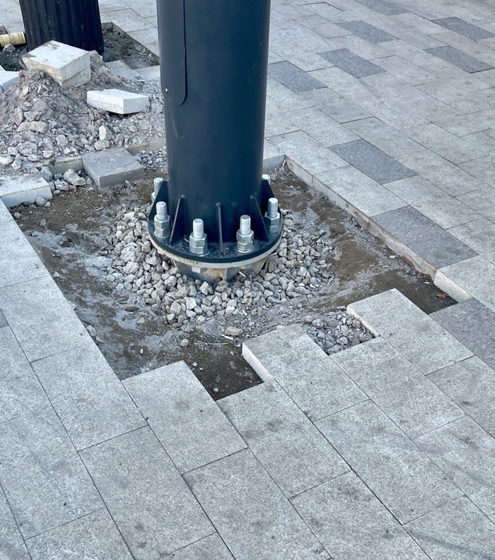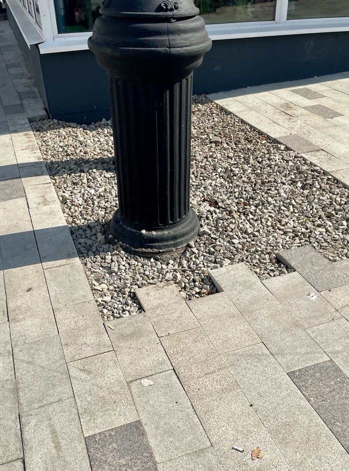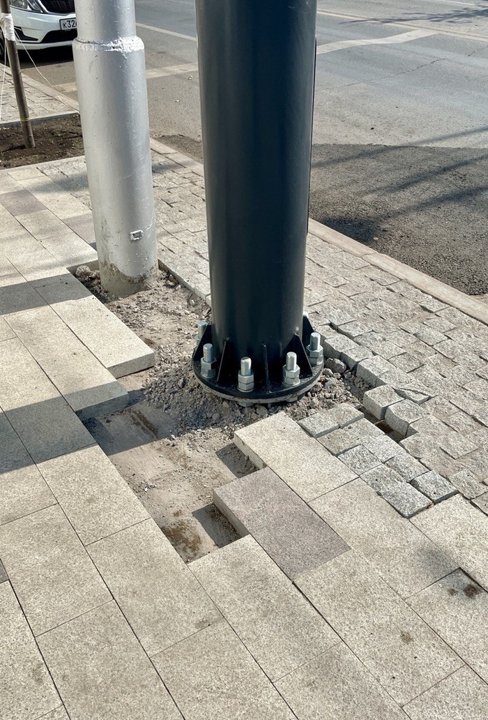 Новые столбы расставили по всему центру. Кто-то скажет — "Какого черта так несимметрично плитку подогнали, неужели нельзя было красиво сделать?", а я отвечу - "Алга!"