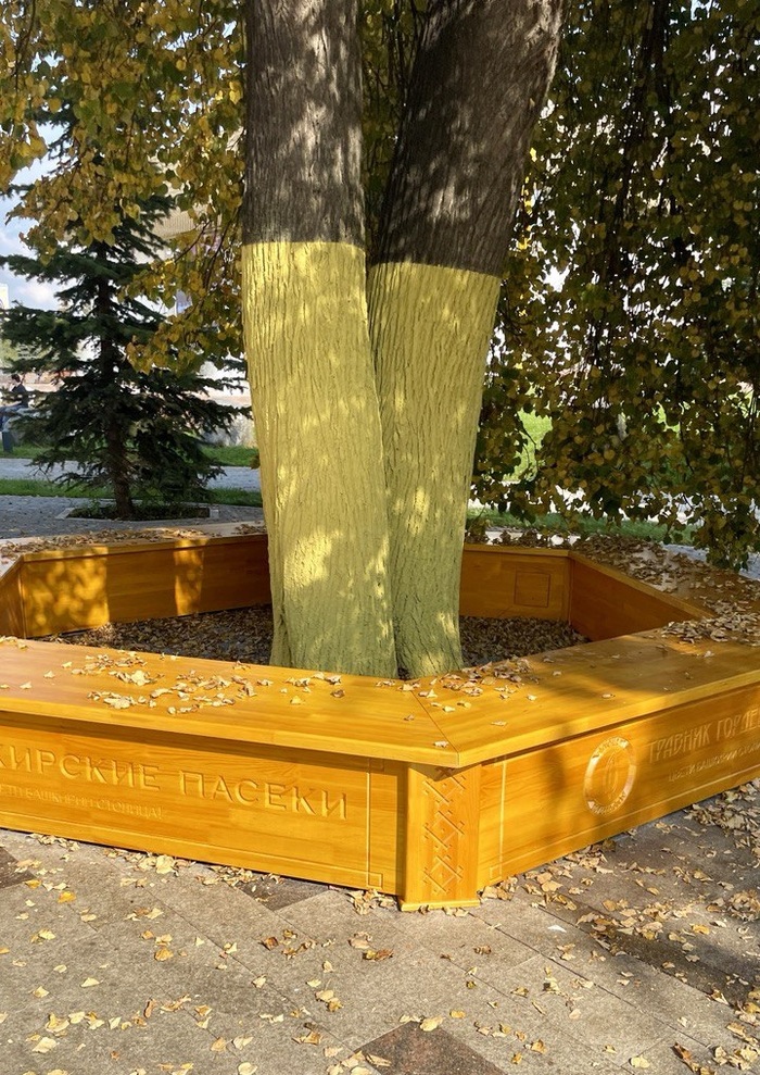 Но только в Уфе, только у нас, дерево не побелили, а пожелтили. Потому что мы можем)