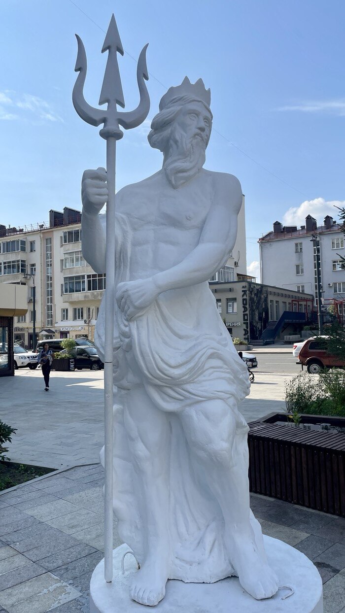 Возле кинотеатра "Родина" установили новые, современные скульптуры. Мы их там и называем "Скульптуры у Родины". Кто-то опять может сказать: "А что с их лицами? А что с ногами?! А почему Посейдон даже не держит свой трезубец?!?!" И я отвечу — "Алга!"
