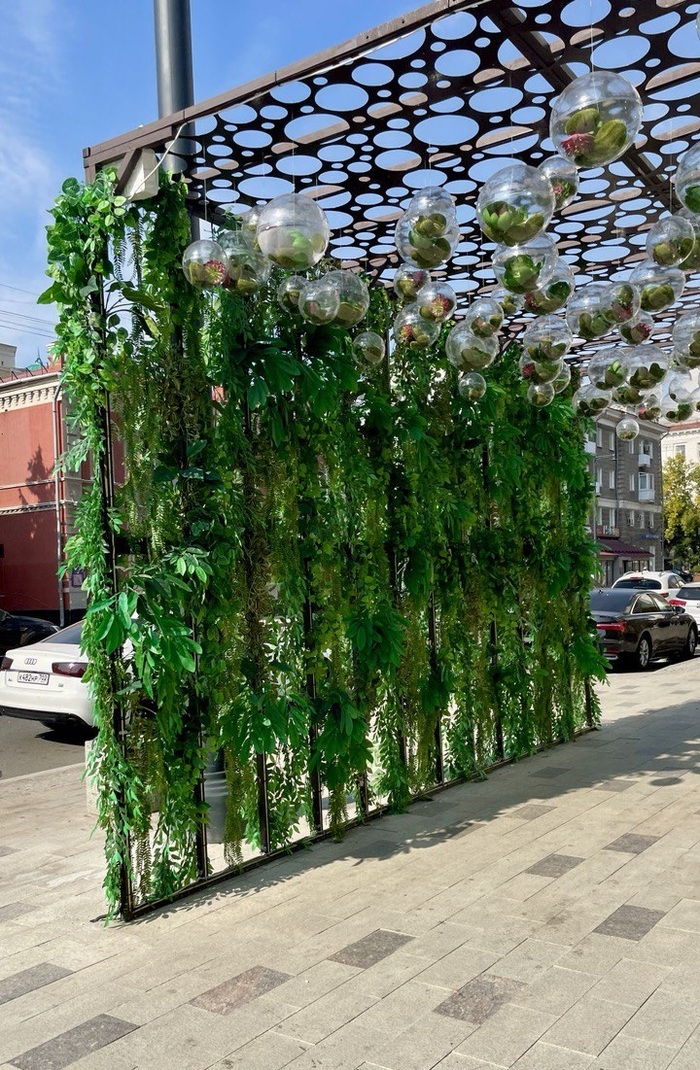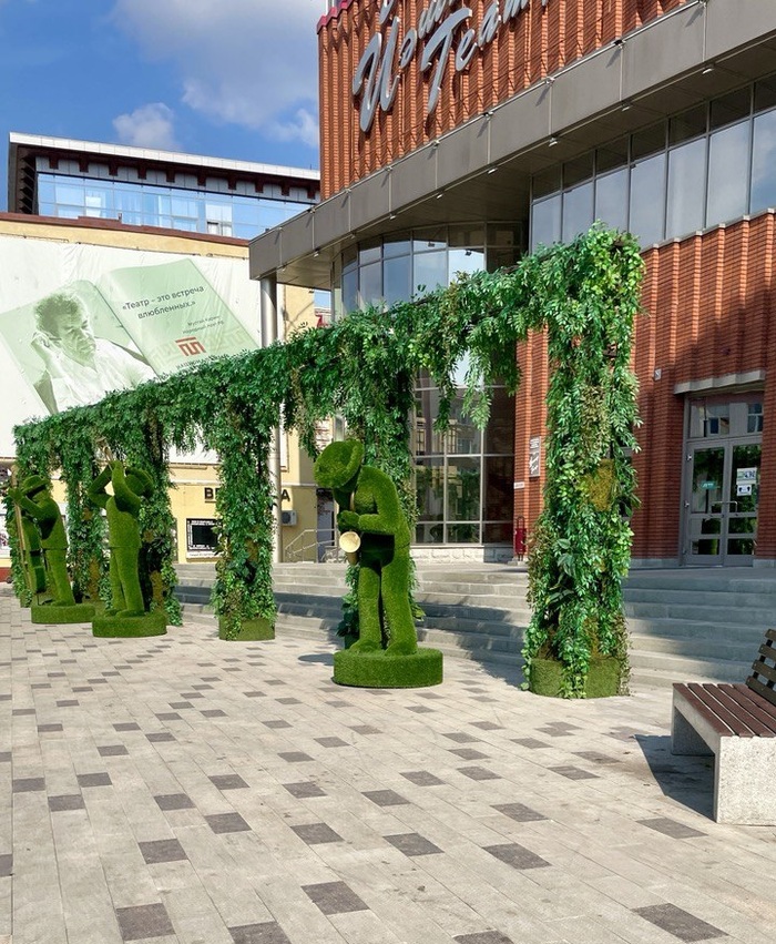 У Молодежного театра стало очень ярко, там установили вот таких зеленых человечков, а главное, разместили очень-очень много зелени! Потому что настоящие растения в центре бетонного города это всегда прекрасно!