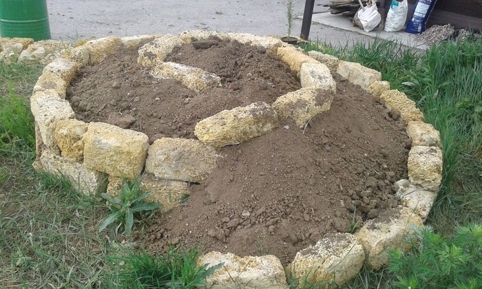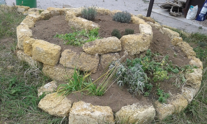 Давно увидела в журнале фото клумбы-улитки и влюбилась. Мечтала о такой рядом с верандой, чтобы за зеленушкой свежей не ходить далеко. Мечту построили, делюсь.