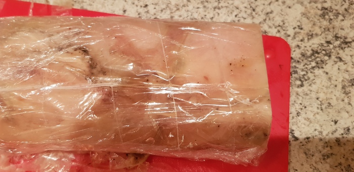 Сделал вкусный куриный рулет с чесноком (очень много чеснока) в духовке.