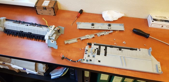 Проблема - застревает листы на двухсторонней печати и ужасный свист/скрип.