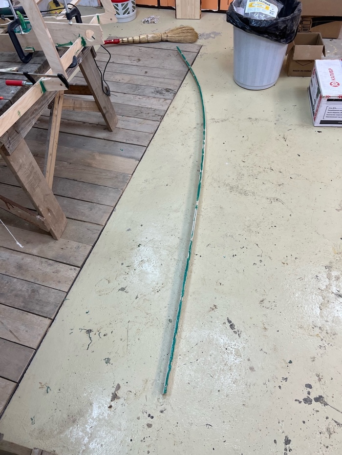 Скуловой и привальные стрингеры склеиваются из двух слоев фанеры. Очень удобно склеивать их прямо на каркасе, не приклеивая их к нему, а затем отделить готовый отформованный стрингер, с которым можно дальше работать и выставлять размеры: