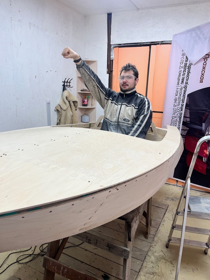 На склейку корпуса ушло примерно 4-5 рабочих дней, но большая часть времени проходит в ожидании застывания смолы. Спасибо тепловой пушке, прогревавшей мастерскую почти что до 30 градусов, в -25 на улице.