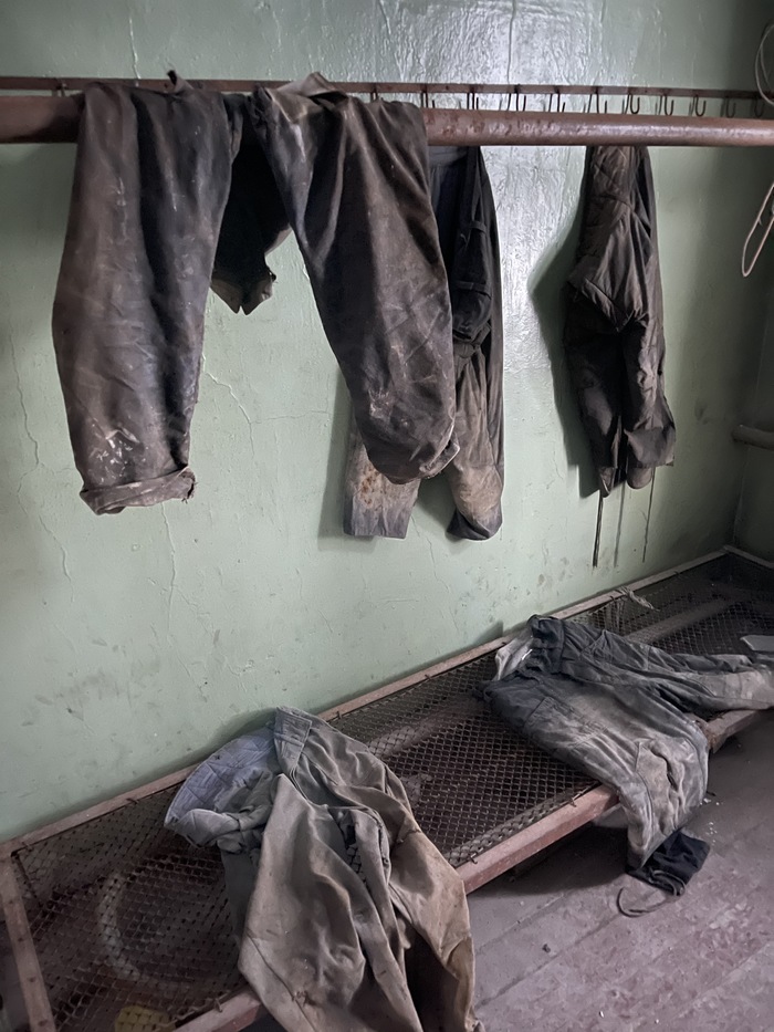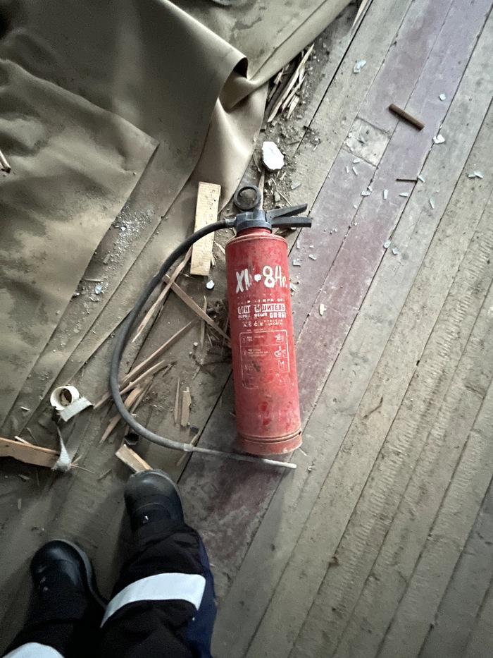 Сушилка для одежды. Сколько она здесь висит предположить сложно. Поселок был заброшен в 1962, однако огнетушитель выше датирован 1984 годом.