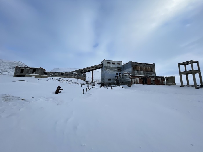 По дороге в Баренцбург мы заехали в заброшенный поселок-порт Колсбей. В нем некогда производилась отгрузка угля, добытого в шахтах Груманта, откуда была проложена железная дорога. Сейчас он заброшен, пара зданий законсервирована, но в некоторые можно зайти.