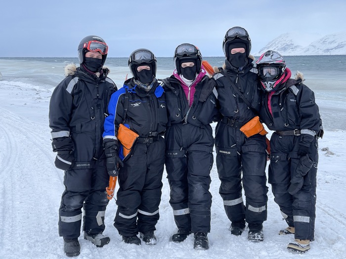 Как и в прошлый раз, в Баренцбург мы ехали на снегоходах. Однако в этот раз группу вел я сам, так как знал дорогу. Всего нас было 6 человек на четырех снегоходах, все студенты-норвежцы нашего института, которым понравилась идея съездить посмотреть как гуляют русские на масленицу.