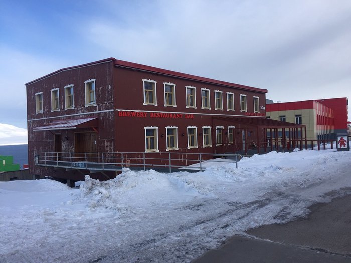 Бар "Красный медведь" с собственной пивоварней. В Баренцбурге 2 бара-ресторана, "Красный медведь" и "Красин". Красный медведь сам варит пиво(по мнению местных отстойное и горькое, но лично мне темное понравилось). Из еды неплохие бургеры. "Красин" это больше рыбный ресторан.