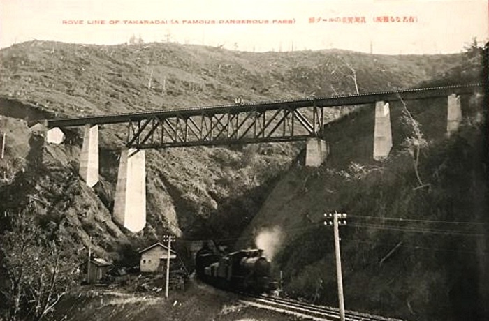 Чертов мост находится в районе станции Николайчук Холмского района. Поезд проезжал по этой дороге через два тоннеля, выезжал почти на самую вершину сопки и проходил по сооруженному Чертову мосту на высоте 38 метров.