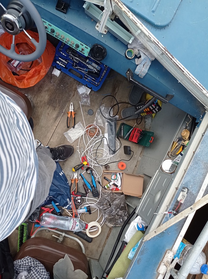 После закупки и установки всего для электричества в катере, это дополнительный аккумулятор, ящик для них, провода 10 квадратов, прерыватель массы, разведения проводки, установки блока предохранителей, закупки круга спасательного, светящегося буя для круга….ходовых огней (соответствующих требованиям 22 градуса позади траверса)..некоторых недостающих инструментов…