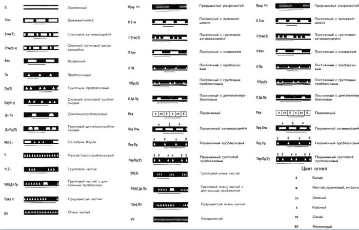 О! Еще вспомнил один плакат. Это световая индикация навигационных знаков. Просто задачки на «Вы видите ПерПр(2)…»