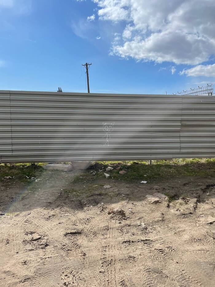 Очень долго думали что делать с этой частью забора, решение было принять элегантное и красивое, покрасить его в цвет грунта рядом, но поскольку каждый исполнитель выбирал эталонный цвет самостоятельно, то получилось слегка сумбурно.