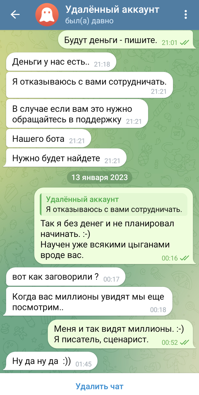 Данная ветка ответов чертовски напоминает мне наш рабочий чат куда я в 2019 году обратился из Ноябрьска с проблемой - не включается привезённая туда по реке фиговина за много миллионов рублей, как бы нам не остаться с носом, - добавил я намекая на то, что сегодня пятница.