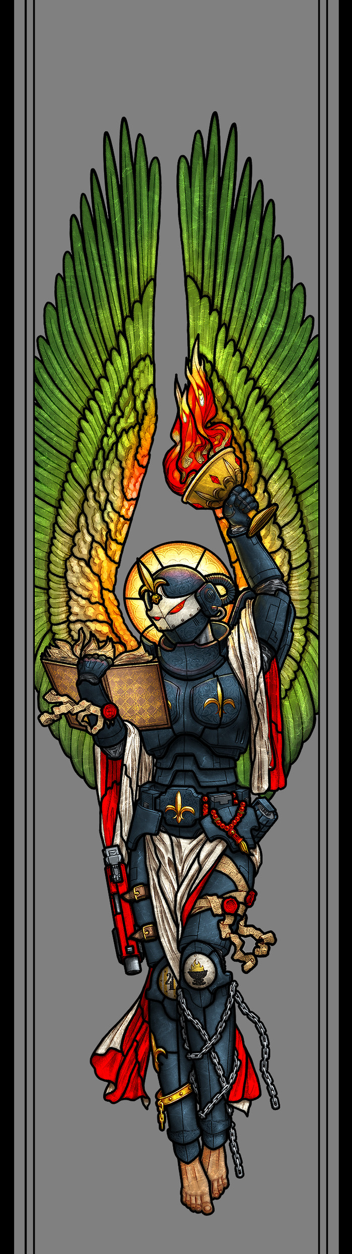 С последней публикации прошело чуть больше месяца. Это было довольно продуктивное время - я определился, с тем какая именно имперская святая изображена на витраже, и наконец закончил 2D версию витража. И готов ей поделиться с вами. Уху!