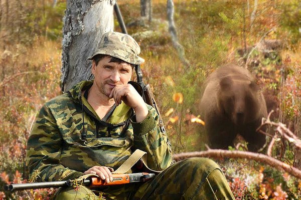 Идём. Озеро уже позади. Слева бугор, справа болото, а впереди ручьевина. И тут собаку снова понесло куда-то в сторону. Обернулся, а зверь движется на меня со стороны бугра. Метров пять до него. Выстрелил навскидку, медведя качнуло, полетела шерсть, а я понял: в стволе была не пуля, а дробь.