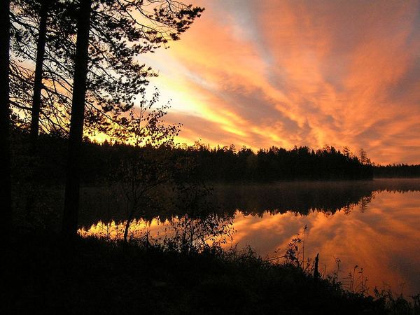 В общем, я не придал этому значения, шел себе спокойно, даже про ружьё забыл. Мало ли, кто тут бродит? Но скоро впереди лаем завёлся Кучум. «Зло работает, похоже, зверь». Прошла ещё пара минут, и в просвете меж деревьями, у озера, показался пёс. Подбежал ко мне, будто сказать хотел: «Хозяин, смотри, какое там чудище!». Увидев, я остолбенел – медведь.