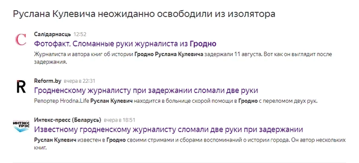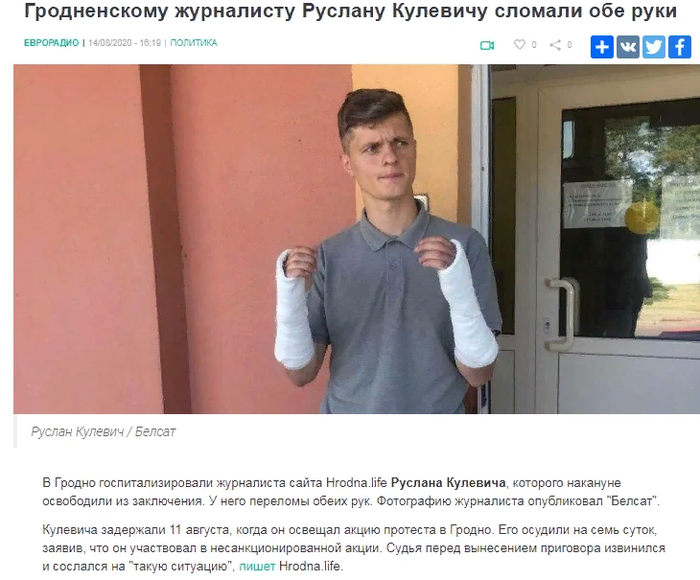 Вместе с тем, новость о поломанных руках Кулевича подхватывает Euroradio.fm