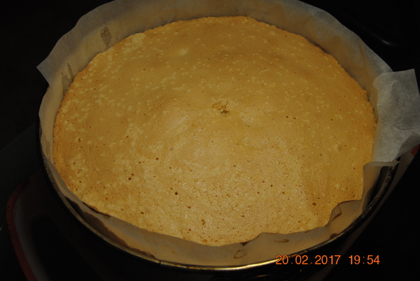 Спустя минут 40 достаем бисквит из духовки,остужаем не вынимая из формы,чтобы не поломать.