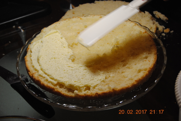 Криваватенький чуть,зато собственноручный)Далее делю корж на три коржа,делаю это с помощью книжки и острейшего ножа: