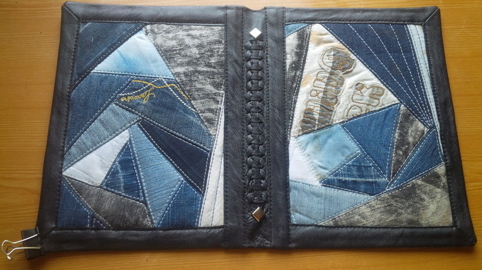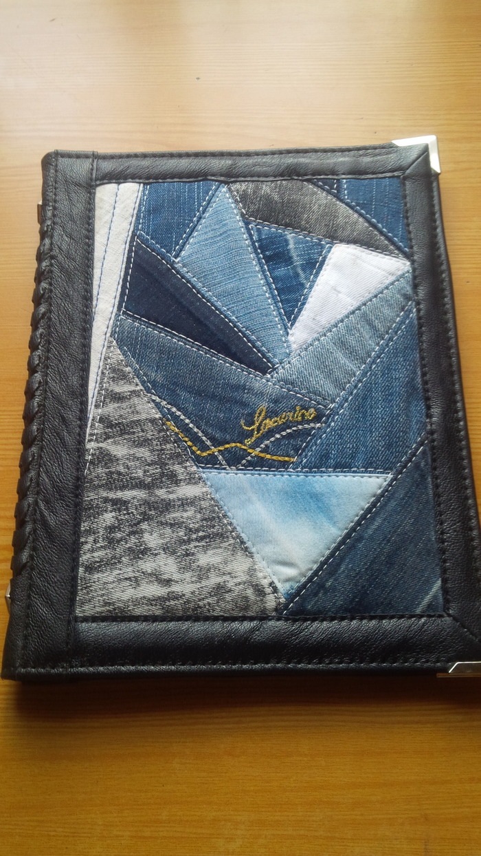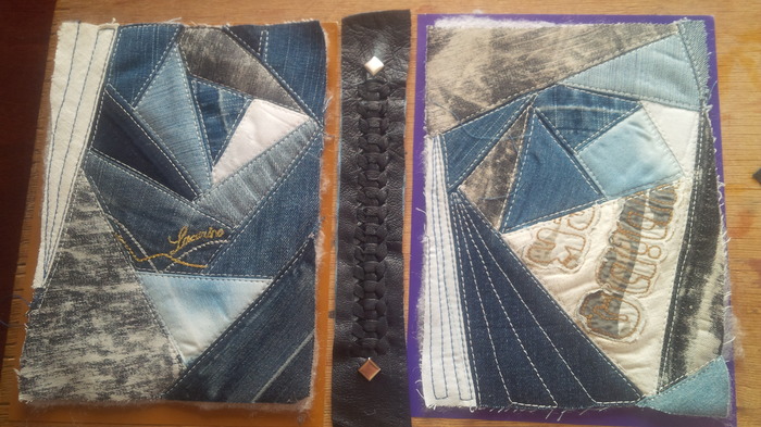 Перебрав разные варианты решила, что это будут детали лоскутного шитья в кожаной рамке с переплетом.