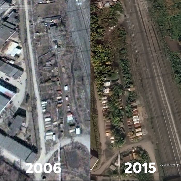 Но можно сравнить карты, за какой-то период времени. Я взял 2006 и 2015. Со слов автора в 2015 этот гараж еще был.