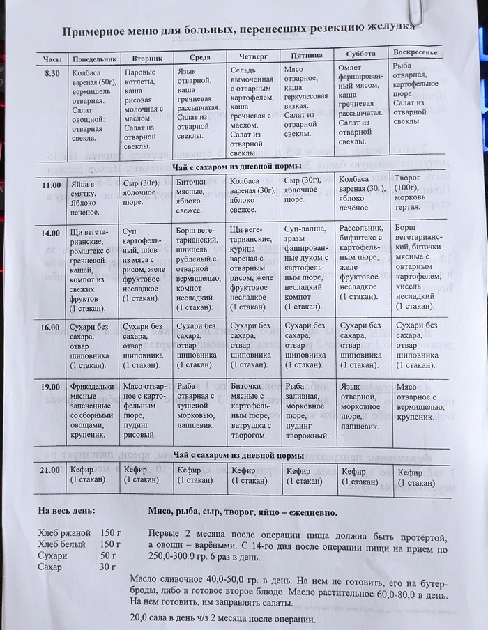 7) Питание, вообще не понятно что можно, что нельзя, в больнице дали лишь брошюрку и она сомнительна, (в диете есть лук, который точно нежелателен, да и диагноз не мой, никаких резекций желудка не было)