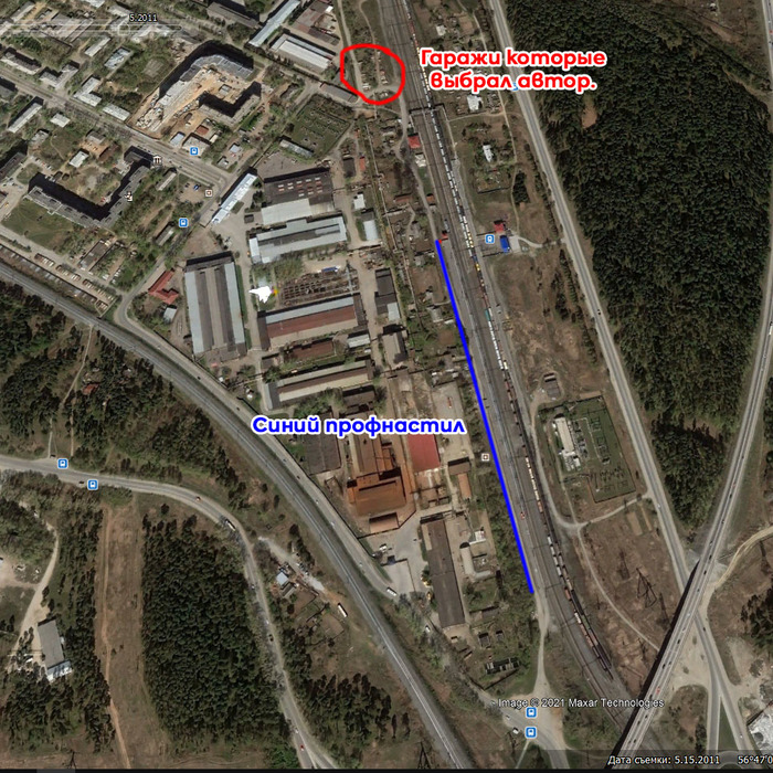 Даже в 2006 году их было не так много, на заднем плане виднеется пром-зона и большой кран. На мой взгляд довольно много ориентиров что-бы найти это место на картах. Вообще кроме проф настила и что гараж высокий по ориентирам от автора как-то пусто...