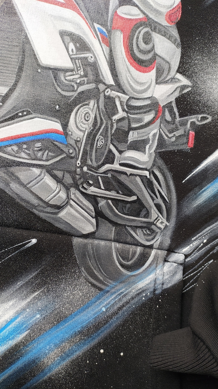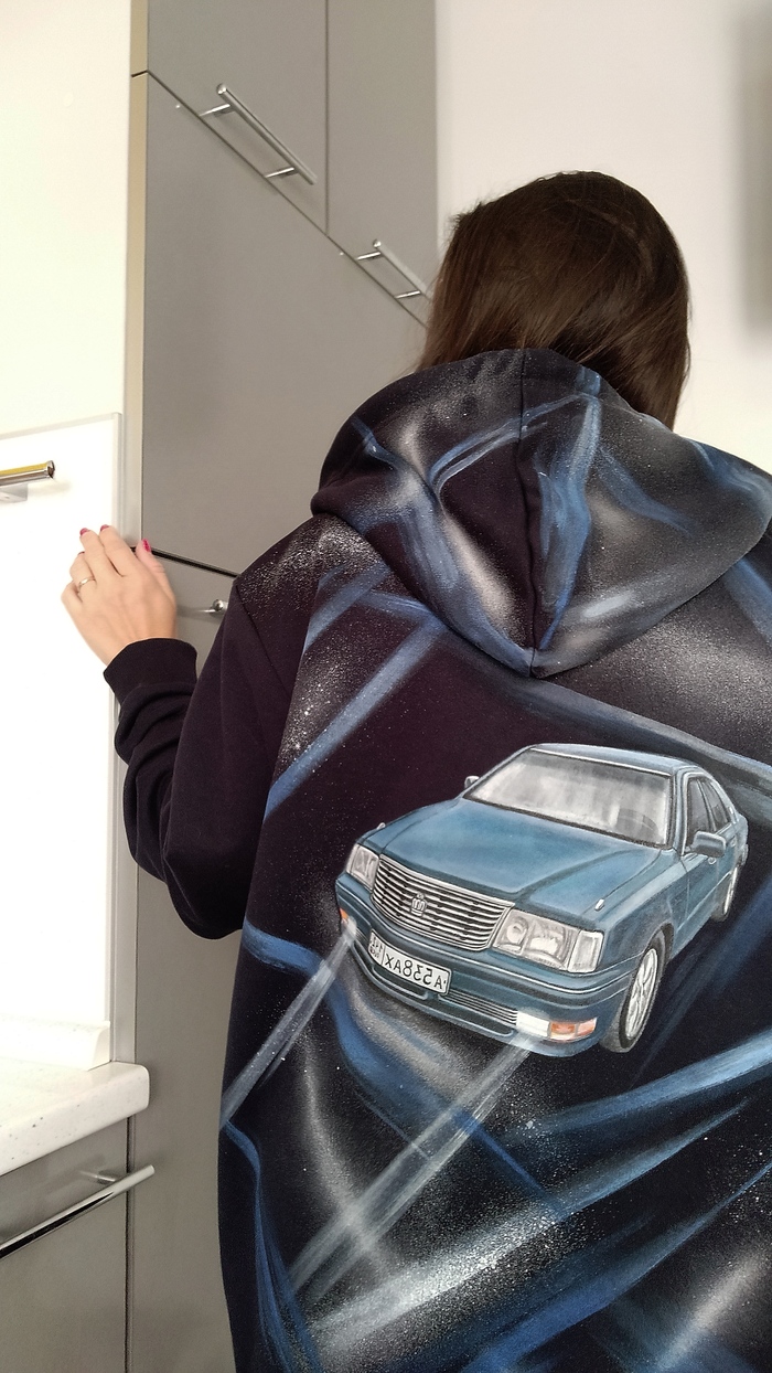 Джинсовую куртку с росписью "Camaro" и кожаную сумку с росписью "Ауди".
