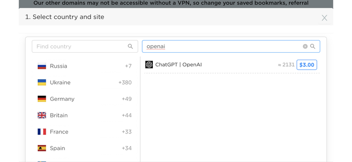 Первая преграда, встречающая нас перед сайтом OpenAI - блокировка по IP.