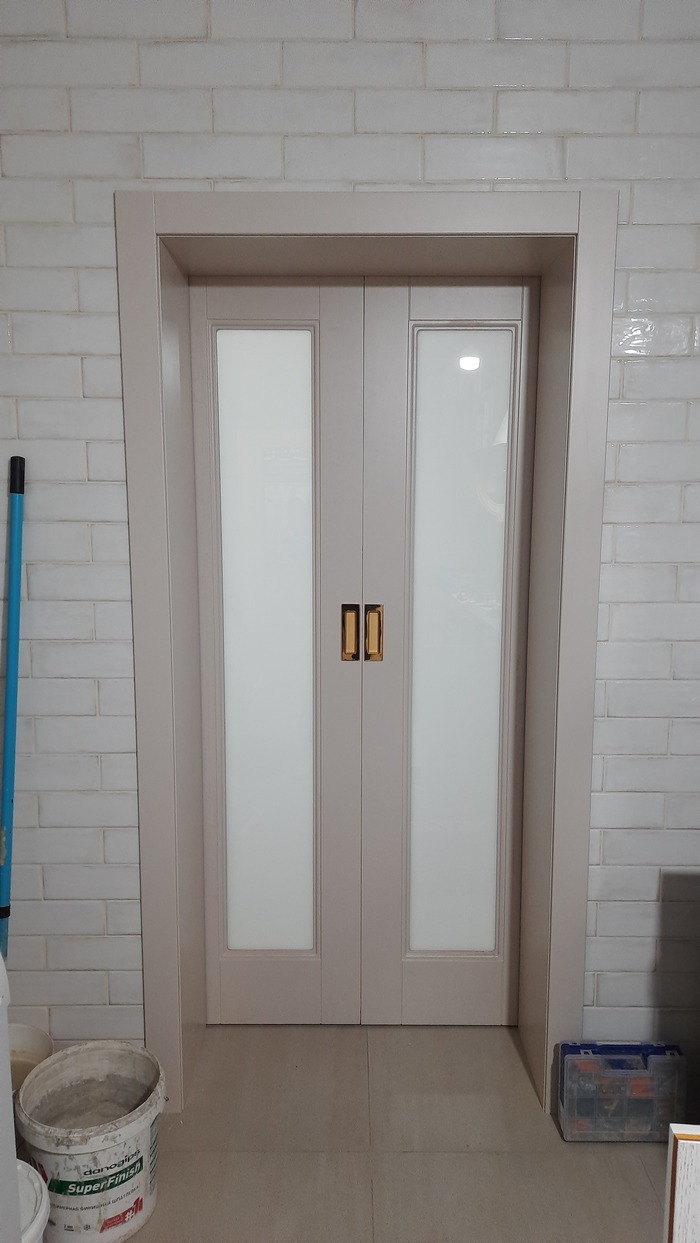 Панелями от того же производителя закрыл короба с тех. отверстиями. Щель между верхними шкафами и стеной закрыта обрезками фасадов.