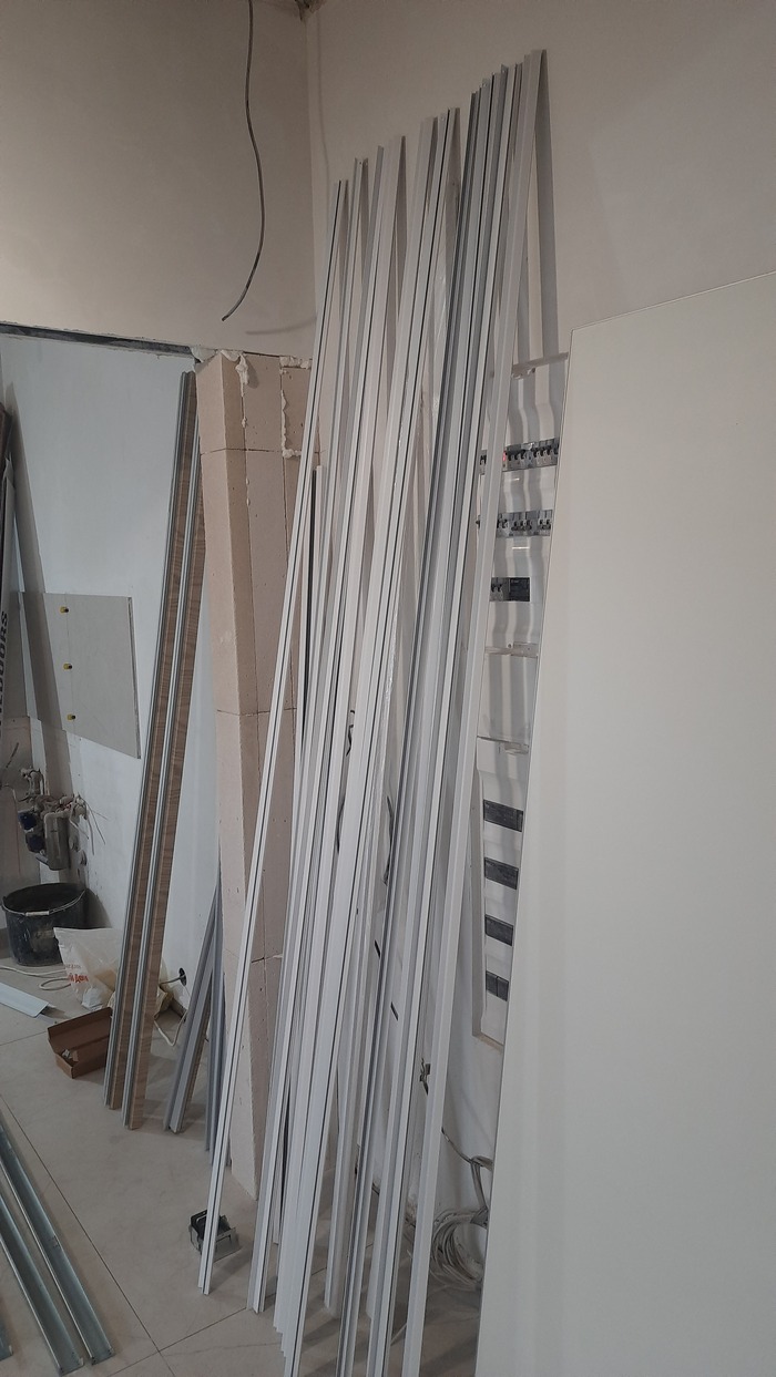 Установил теневой пластиковый багет для натяжных потолков. Попросил знакомого натянуть полотно. Хотел сам, но решил не рисковать ввиду своей рукожопости при выполнении таких сложных задач)