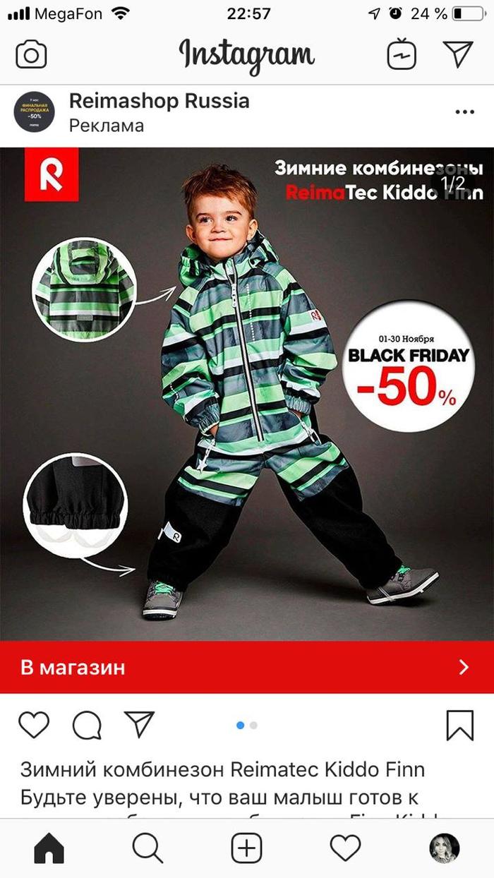 И так, жена решила заказать ребенку комбинезон на зиму, фирмы Reima. Увидела пост в Инстаграмме, черная пятница, бегите пока не кончилось, всего за 3500 руб. Как выяснилось позже, реальный костюм на сайте и в магазинах стоит порядка 7-10 к. а тут халява, халявная.