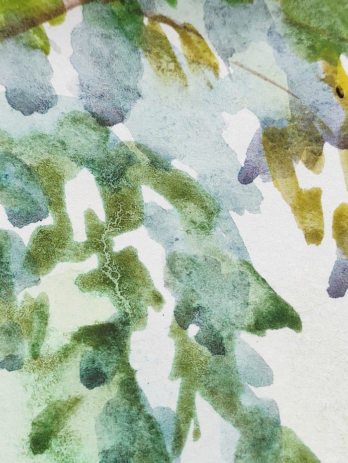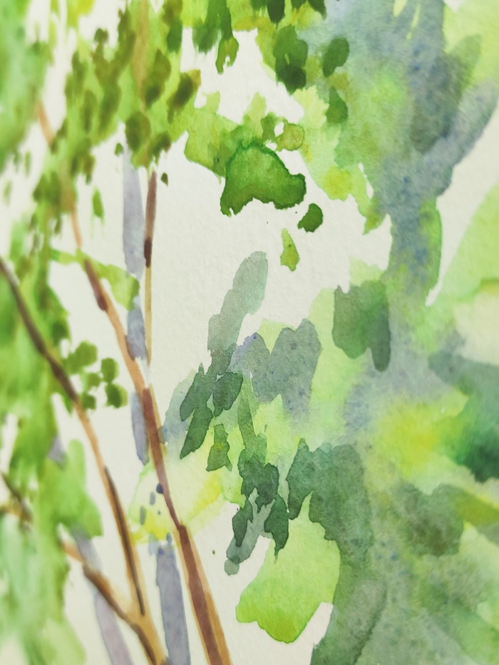 🎨 Техника по-сырому позволила мне передать мягкость и воздушность облаков, а техника лессировка - показать объем и густоту зелени. Каждый штрих кисти стал отражением тех эмоций, которые я испытывала в тот момент.