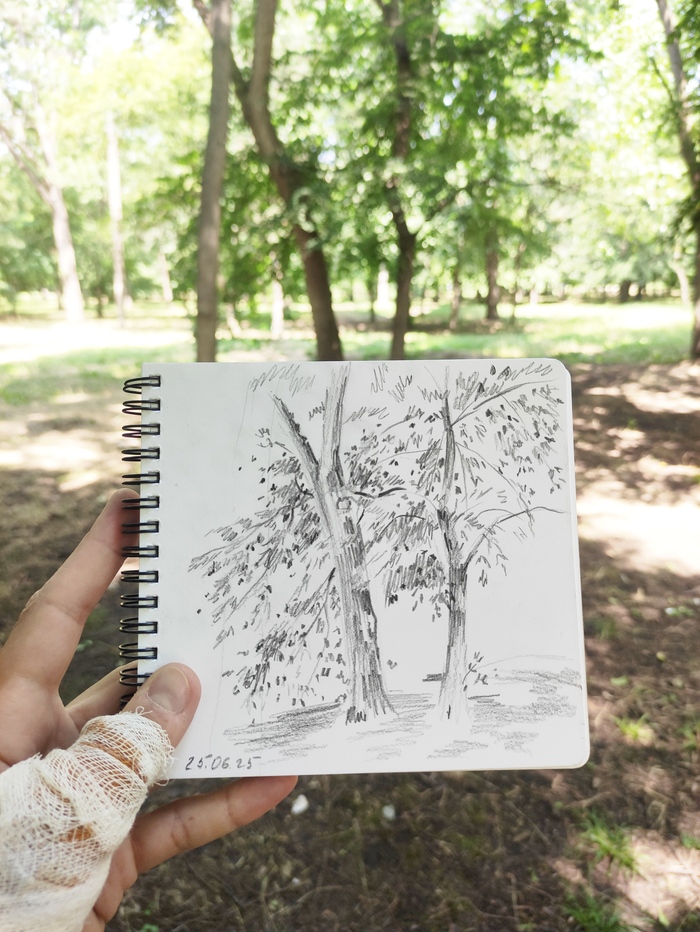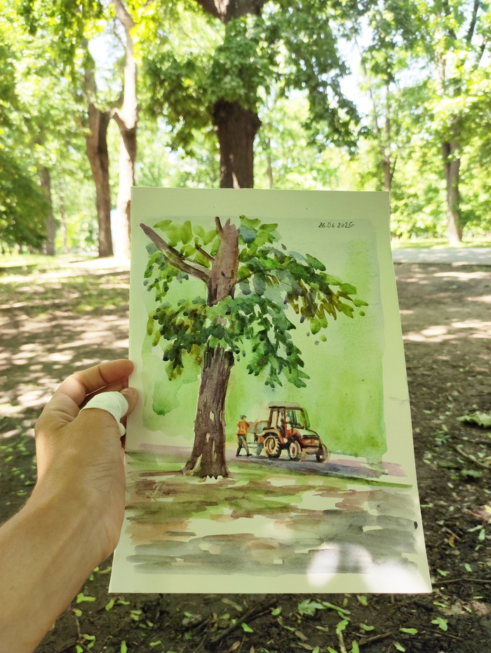 Сегодня хочу поделиться с вами несколькими набросками, которые я сделала прямо в парке. Лёгкие мазки, игра света и тени, живые цвета — всё это помогает передать атмосферу момента.